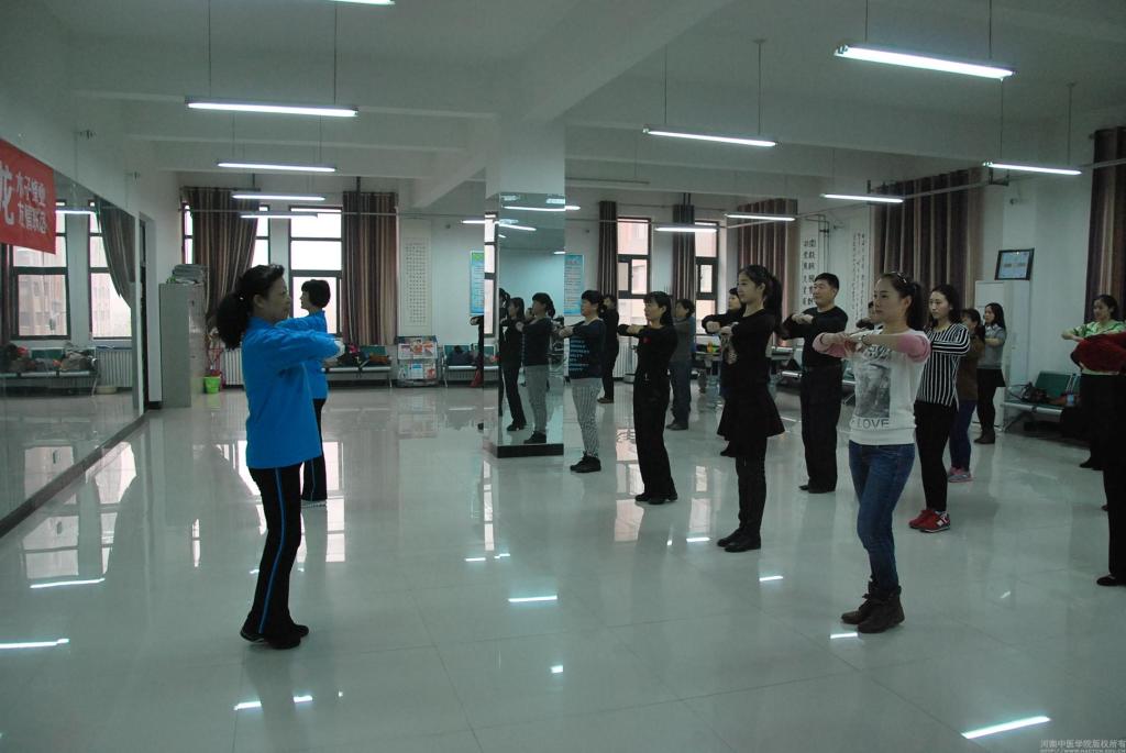 据了解,快乐舞步健身操是由河南省体育局推广开展的一项健身运动,它是以广播体操为基础,以健身走为主要形式,以传统养生理念为动作原理创编而成的。此次培训是为了深入贯彻落实《全民健身条例》,丰富教职工的文体生活。通过培训,以期为我校建立一支快乐舞步健身操骨干队伍,然后再通过这支骨干队伍在全校推广开展快乐舞步健身操。