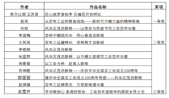 此次系列活动主要包括主题征文和实践教育两项内容。其中,“风华正茂启新程——庆祝中华全国总工会成立100周年”主题征文活动面向全校女教职工征集优秀理论文章,活动自启动以来,得到了广大女教职工的积极响应,她们围绕“工会百年荣光”“劳动精神传承”“新时代女性与工会使命”等核心内容,结合自身学习生活与观察思考,踊跃投稿。截至9月12日,主办方共收到多篇原创作品。经过专家评审的严格筛选与综合评定、公示,努尔比耶·玉苏普、赵雨等12位老师的征文作品脱颖而出,荣获佳绩。同时,鼓励各分工会结合实际,积极开展“踏寻二七峥嵘路,凝聚力量再出发”实践教育活动,以沉浸式体验传承红色基因、凝聚巾帼奋进力量。